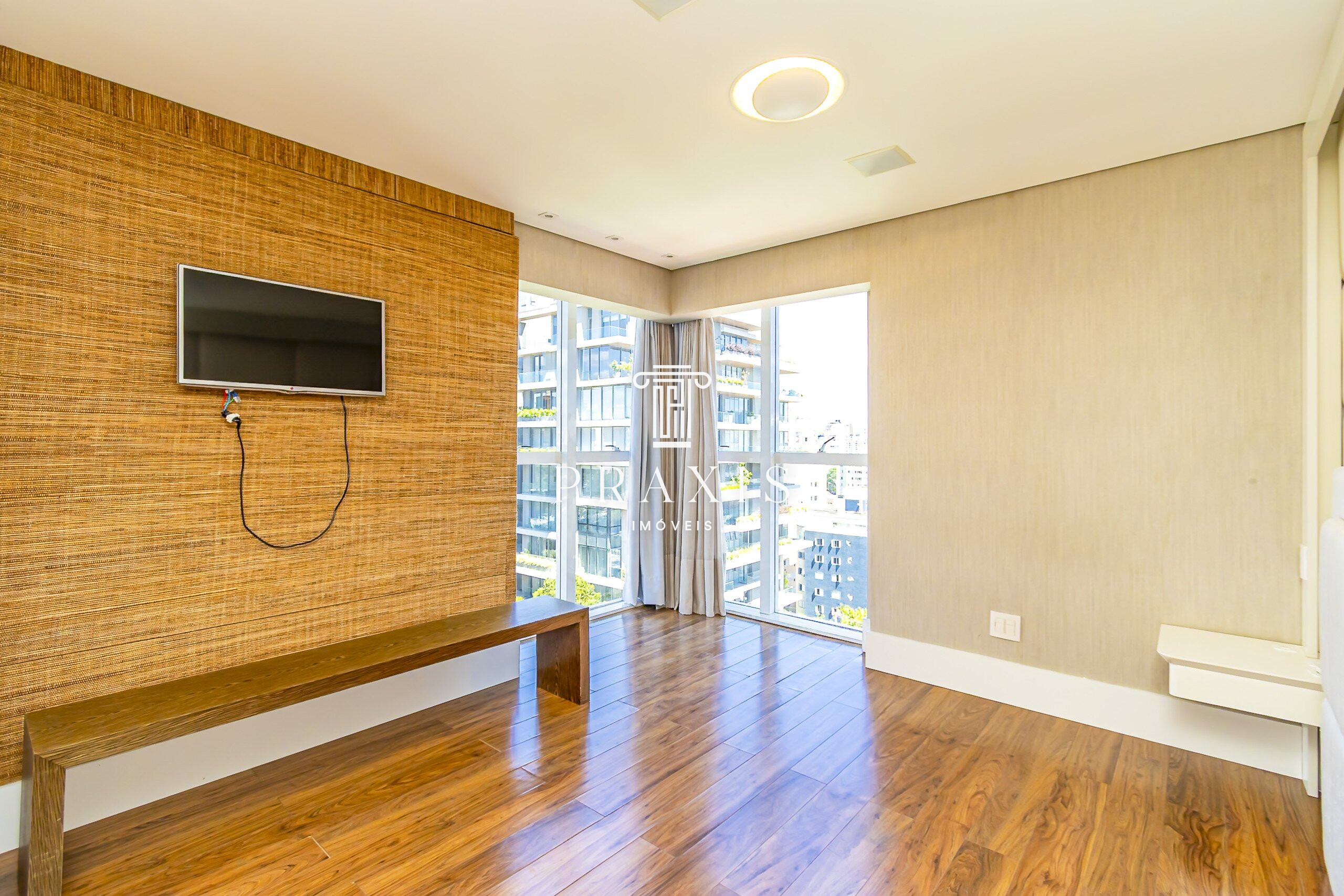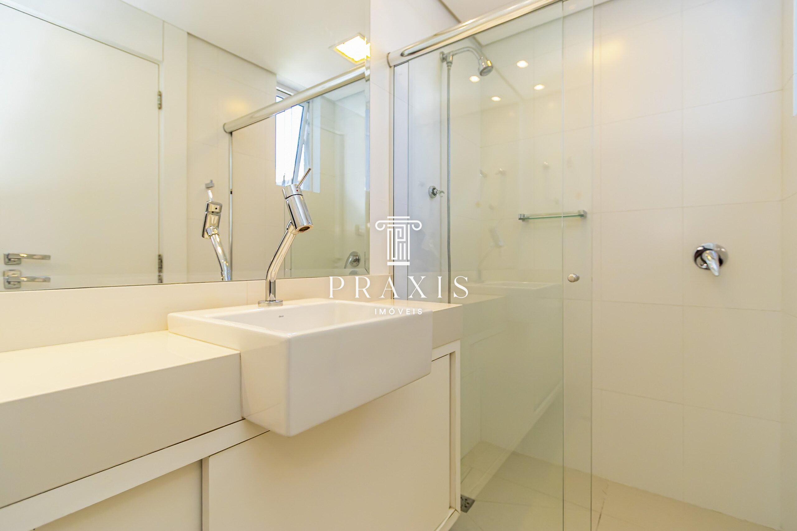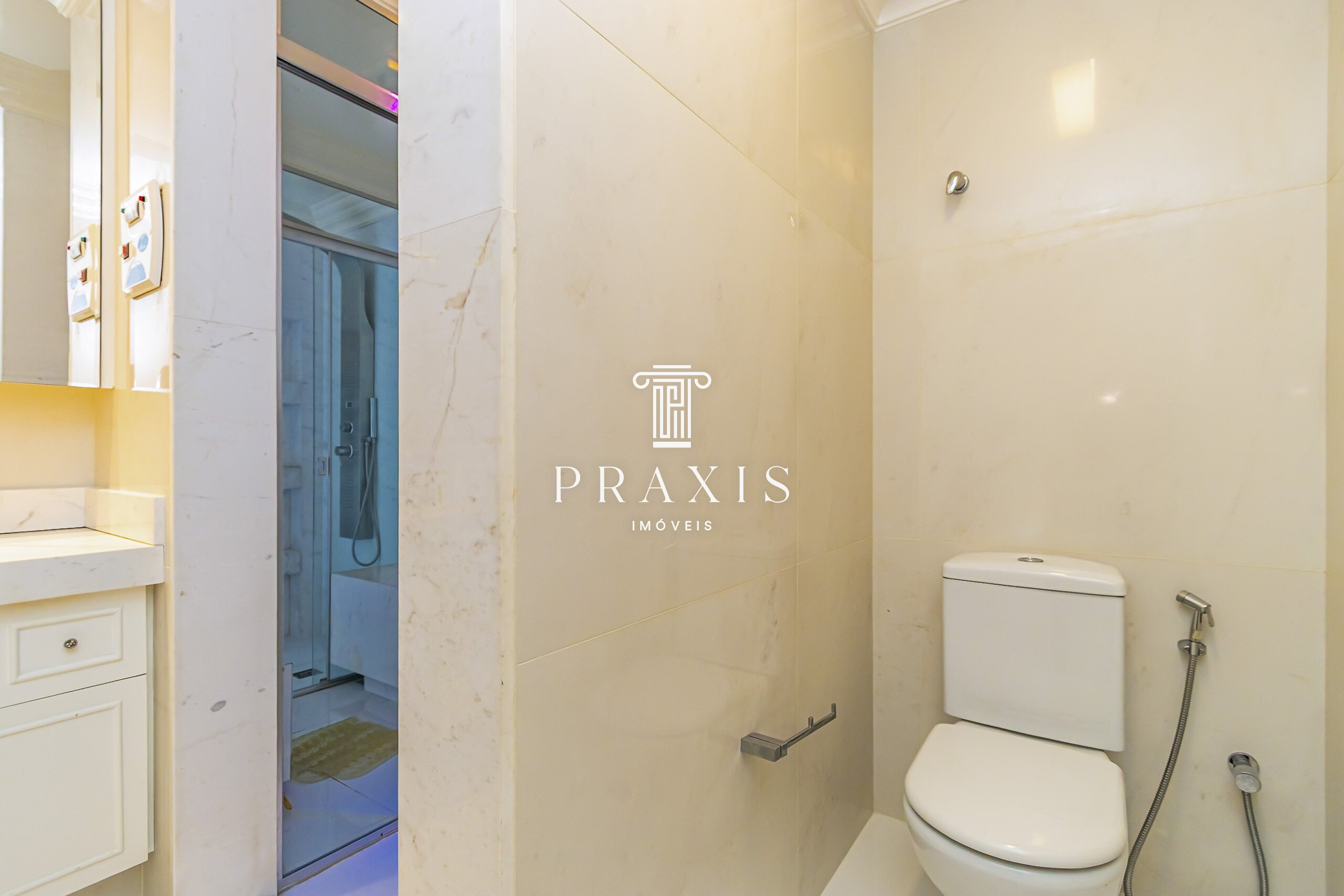 Na área íntima, o imóvel dispõe de uma sala de tv e três suítes confortáveis, sendo uma suíte master com banheiro Sr. e Sra. ambos com duchas equipadas com sistema de vapor, proporcionando experiência de spa no dia a dia. As suítes contam com ar-condicionado, assegurando conforto térmico e privacidade.