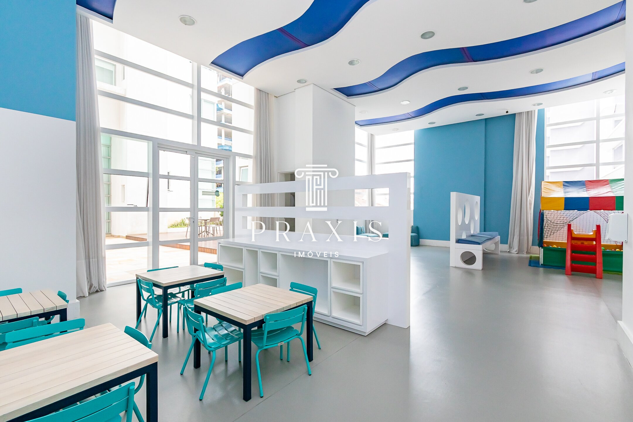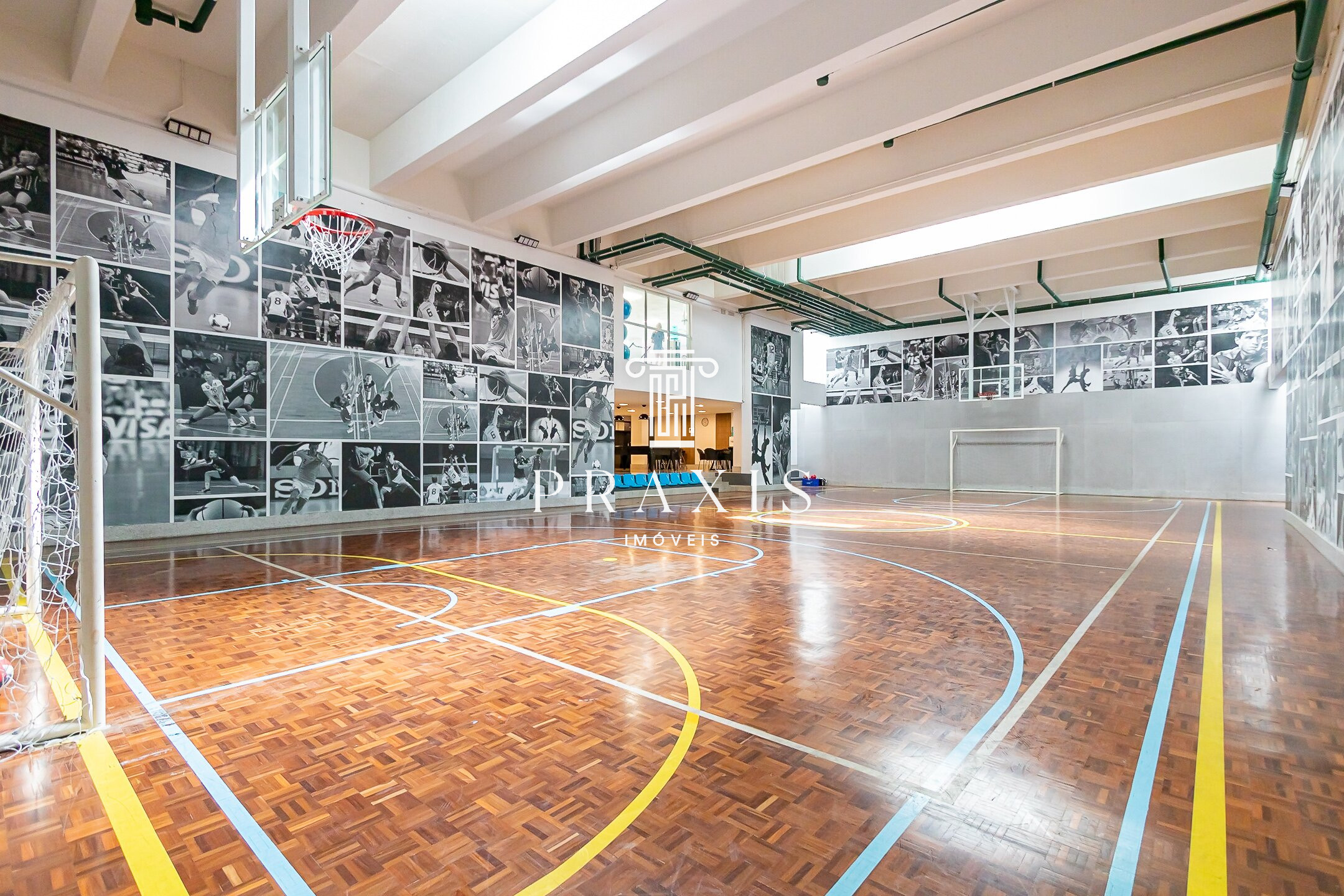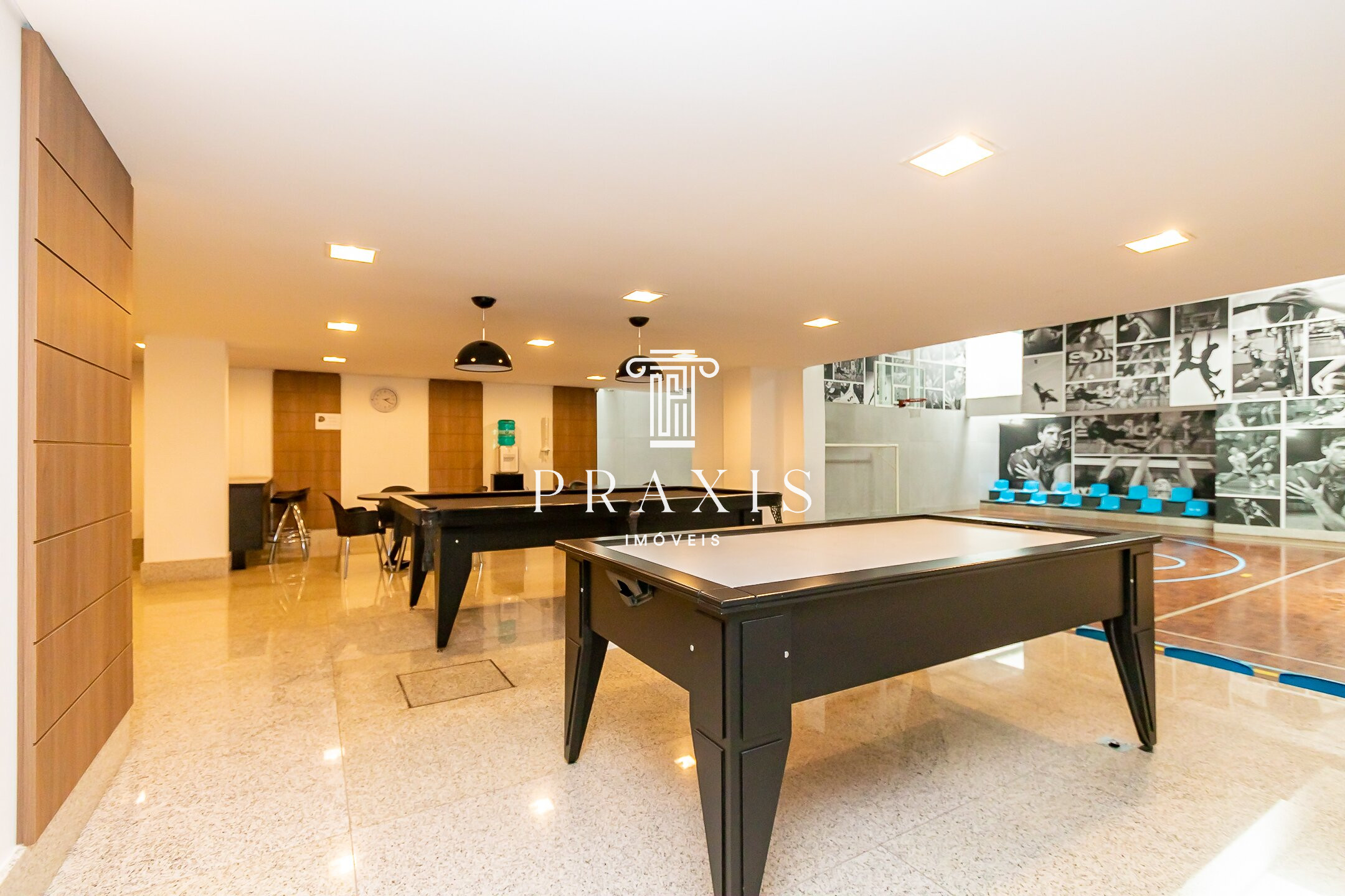 O condomínio oferece infraestrutura de lazer completa, com piscina interna aquecida, salões de festas adulto e infantil, cinema, sala de jogos, brinquedoteca, playground, quadra poliesportiva coberta e sauna.