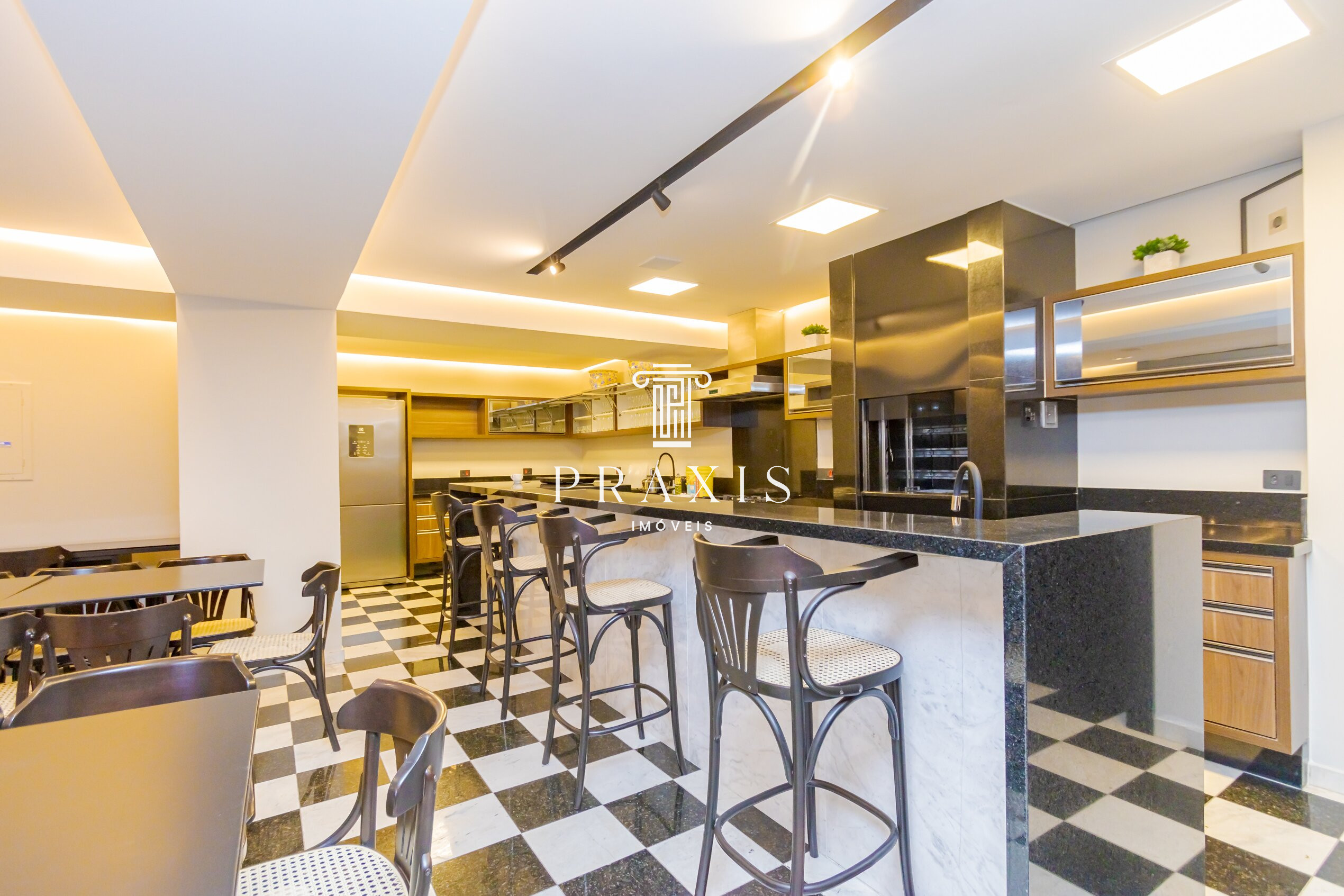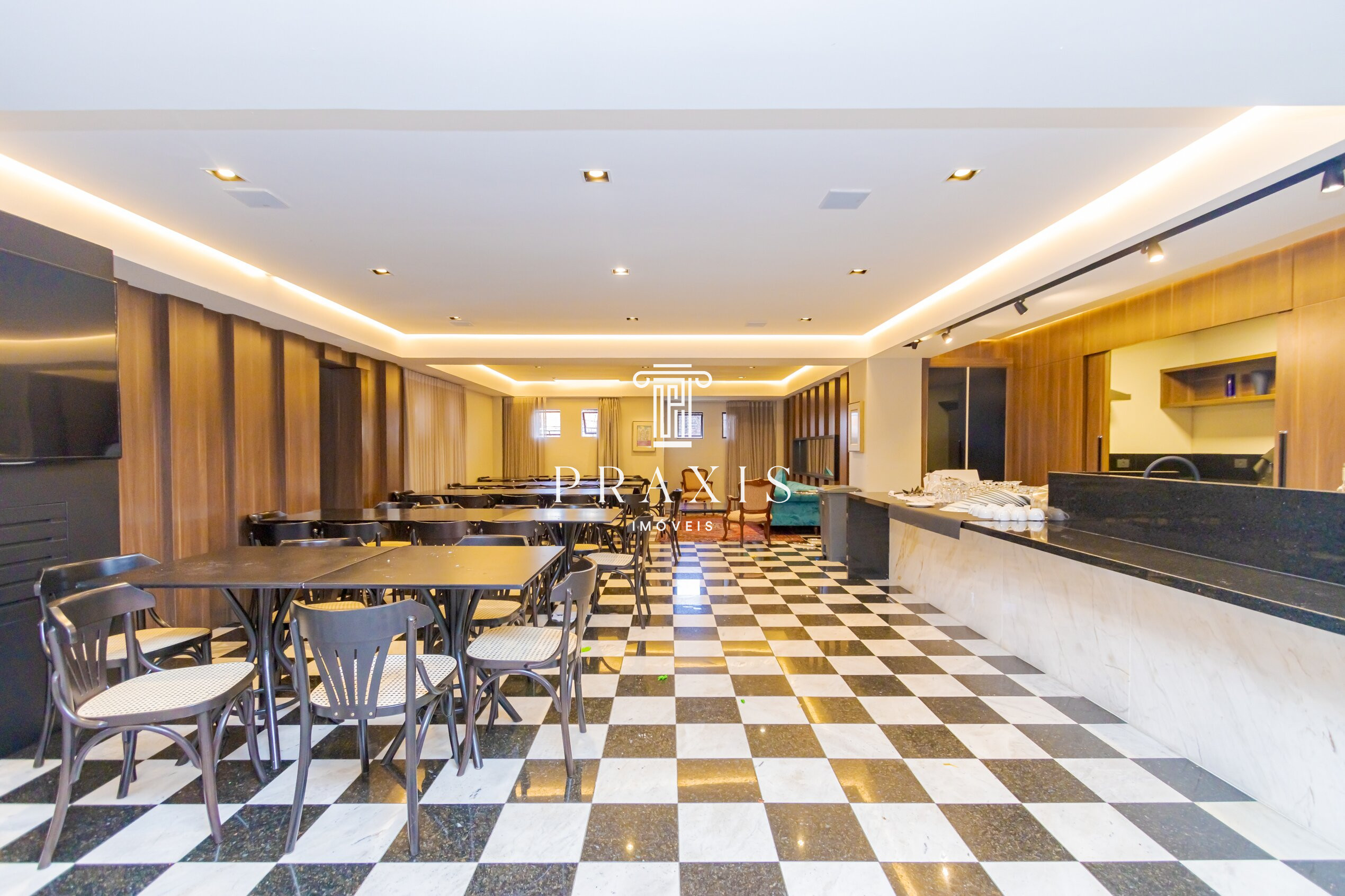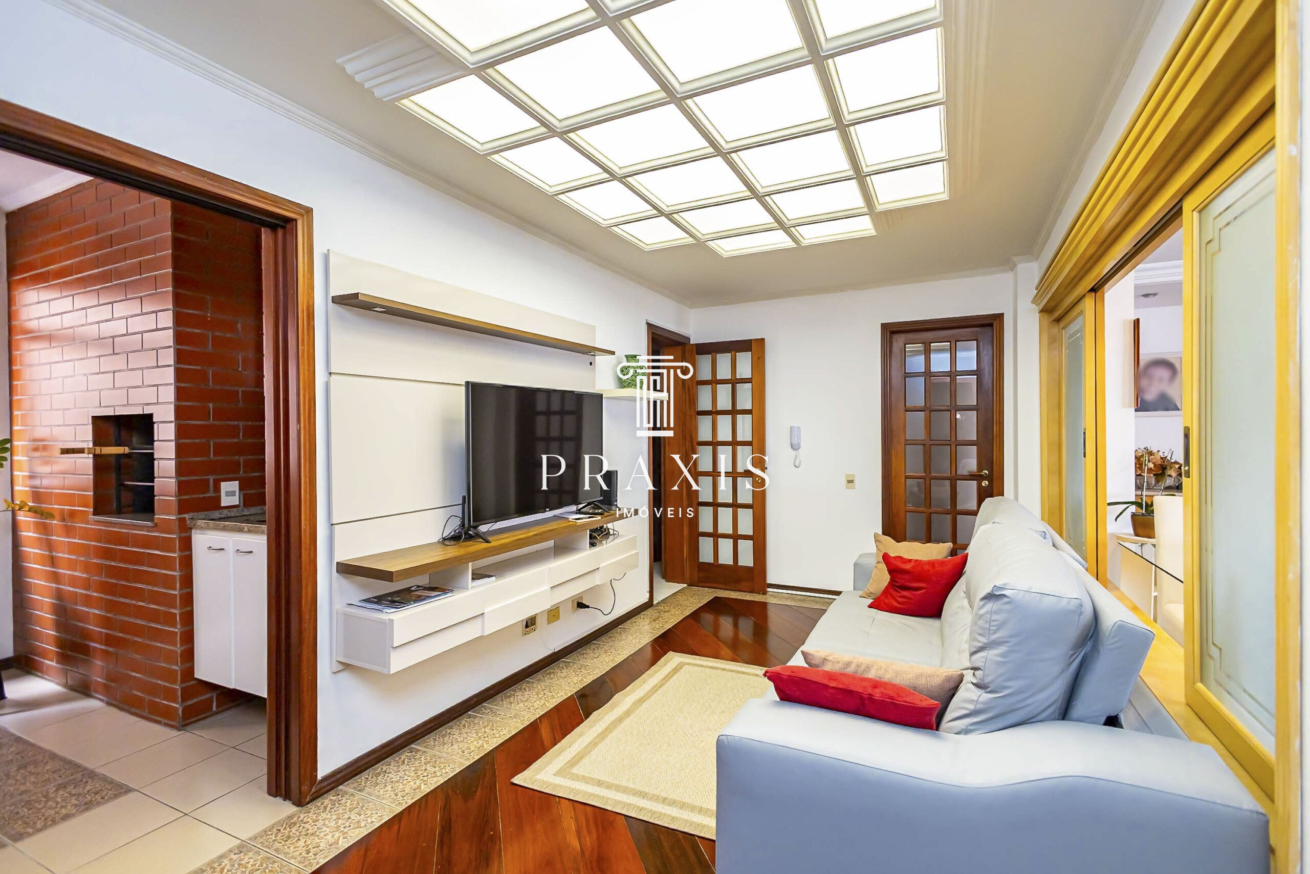 A área social é um dos grandes destaques: sala espaçosa, ideal para compor diferentes ambientes de estar intimo, jantar e estar, com lareira e acesso à sacada e ótima iluminação. A churrasqueira interna integra-se de forma harmoniosa ao ambiente, perfeita para momentos de convivência. A cozinha é generosa, com excelente circulação, complementada por lavanderia independente, trazendo praticidade ao dia a dia. O espaço conta ainda com lavabo.