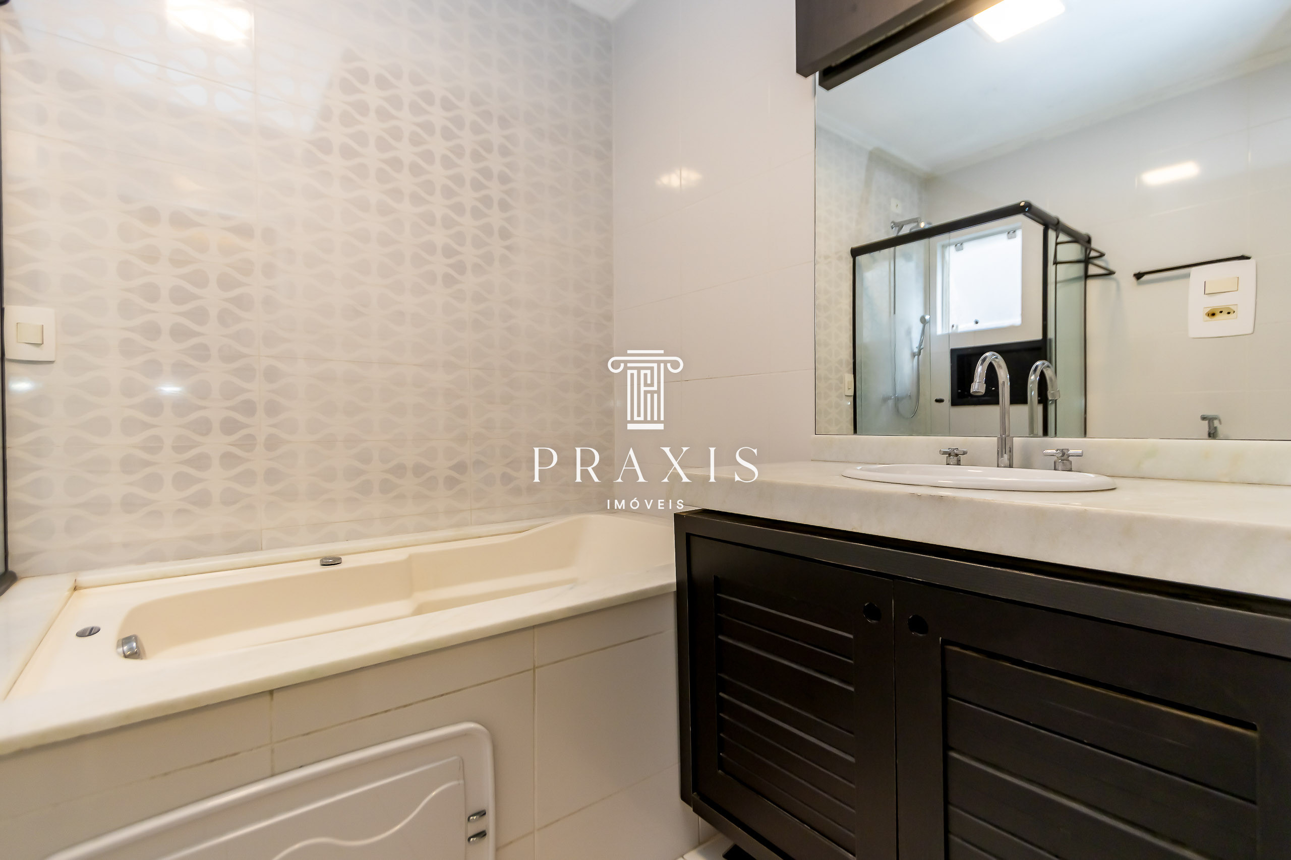 Suíte com closet e planejados, sendo amplo banheiro com banheira de hidromassagem, teto rebaixado em gesso com projeto luminotécnico