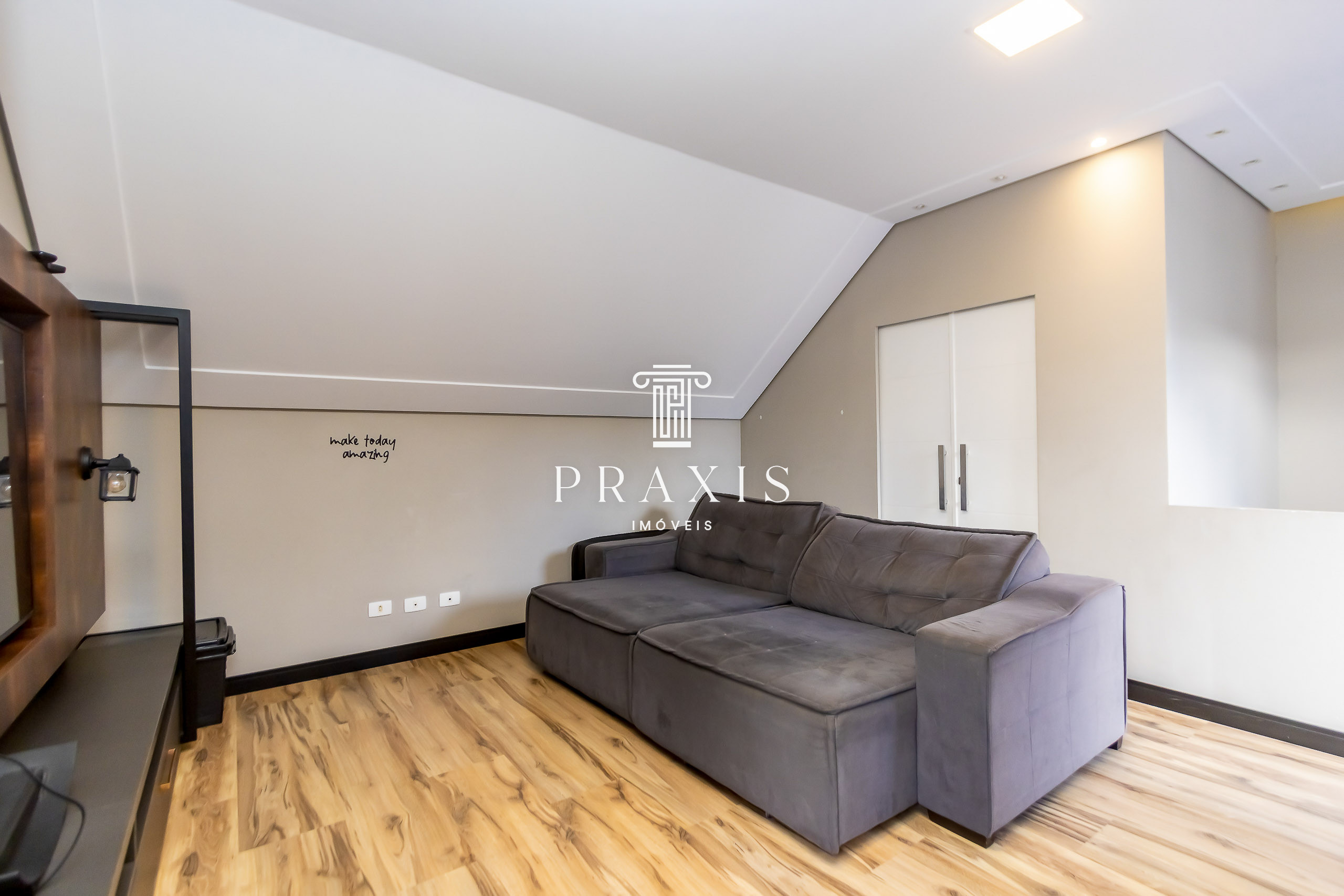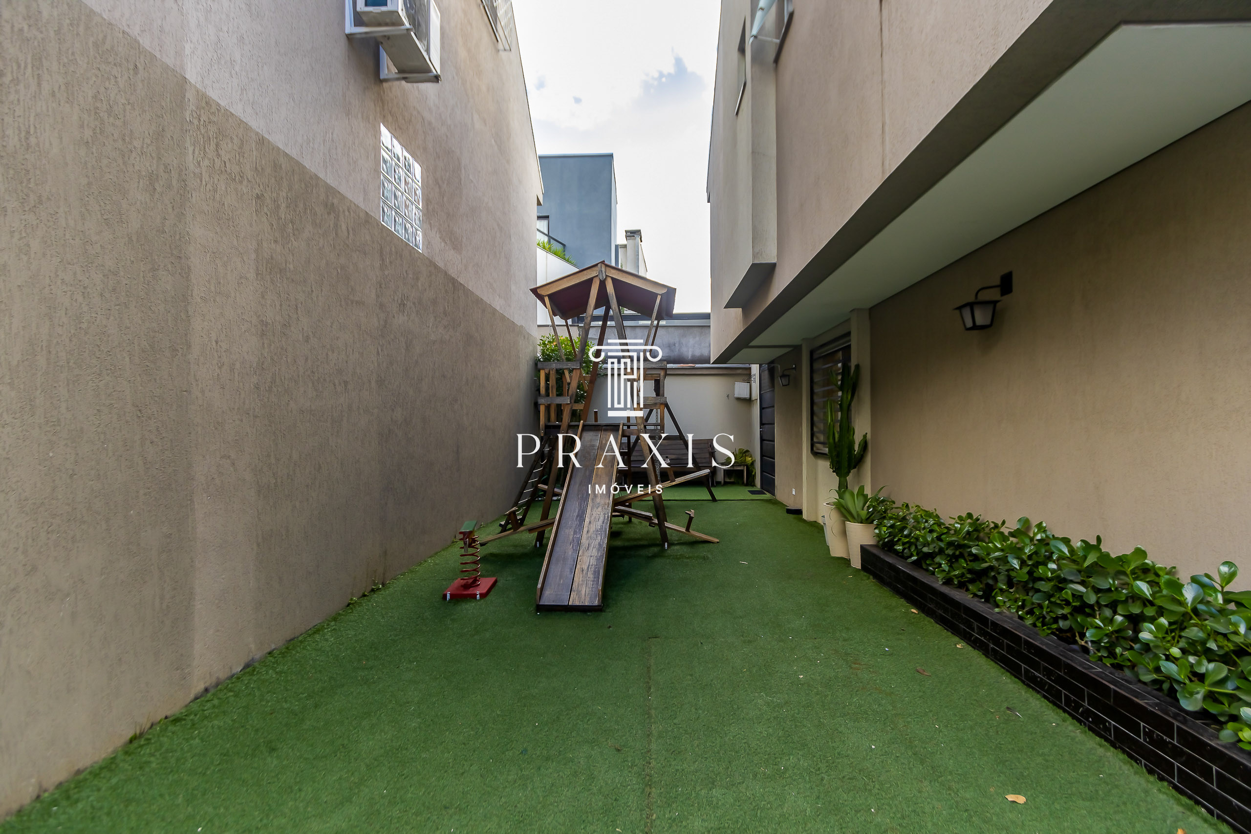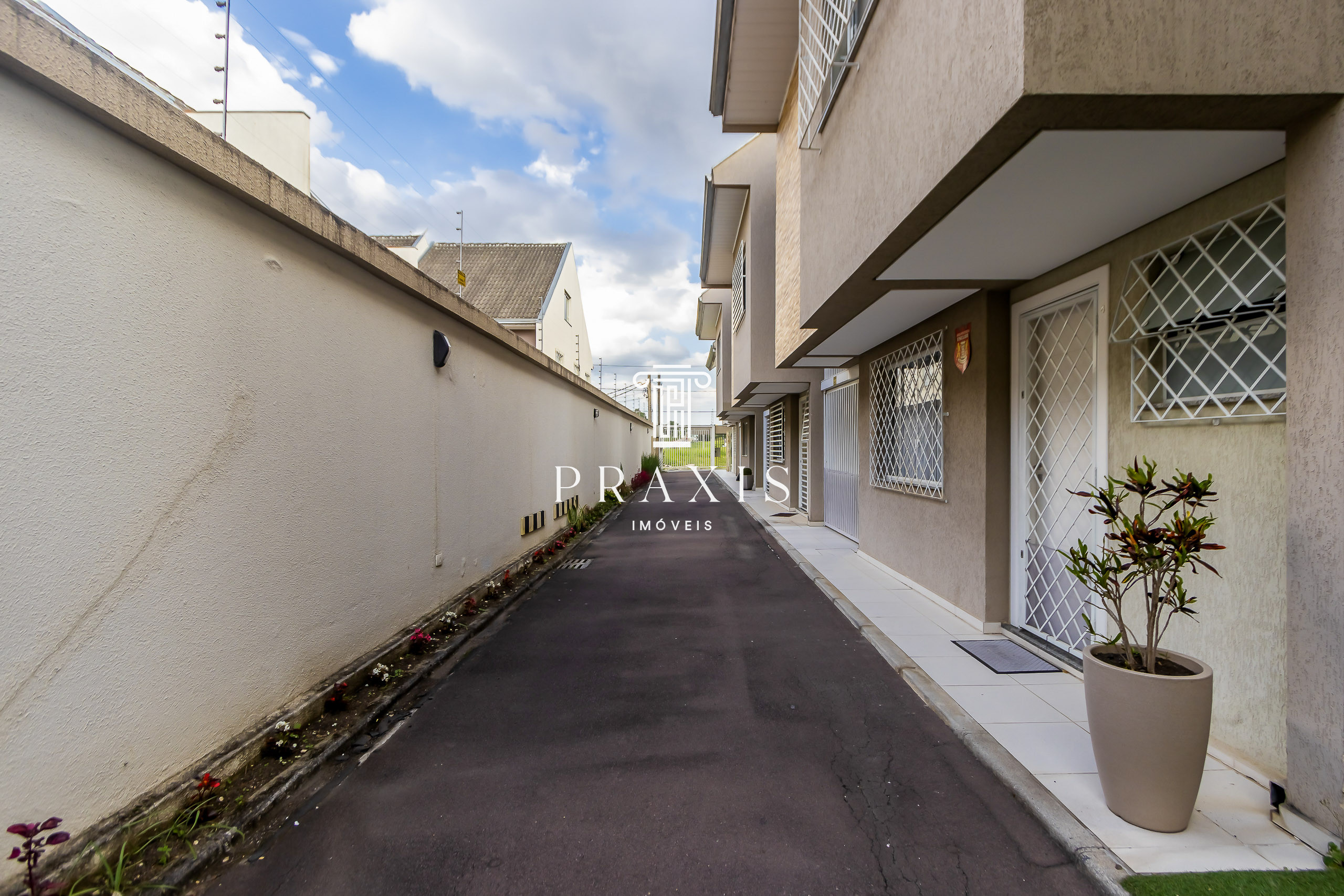 Praxis Imóveis Aluga excelente sobrado triplex, com três quartos (1 suíte) ampla vaga de garagem, no charmoso Conjunto Thereza Glaser, a 20mts. do Parque Atuba.