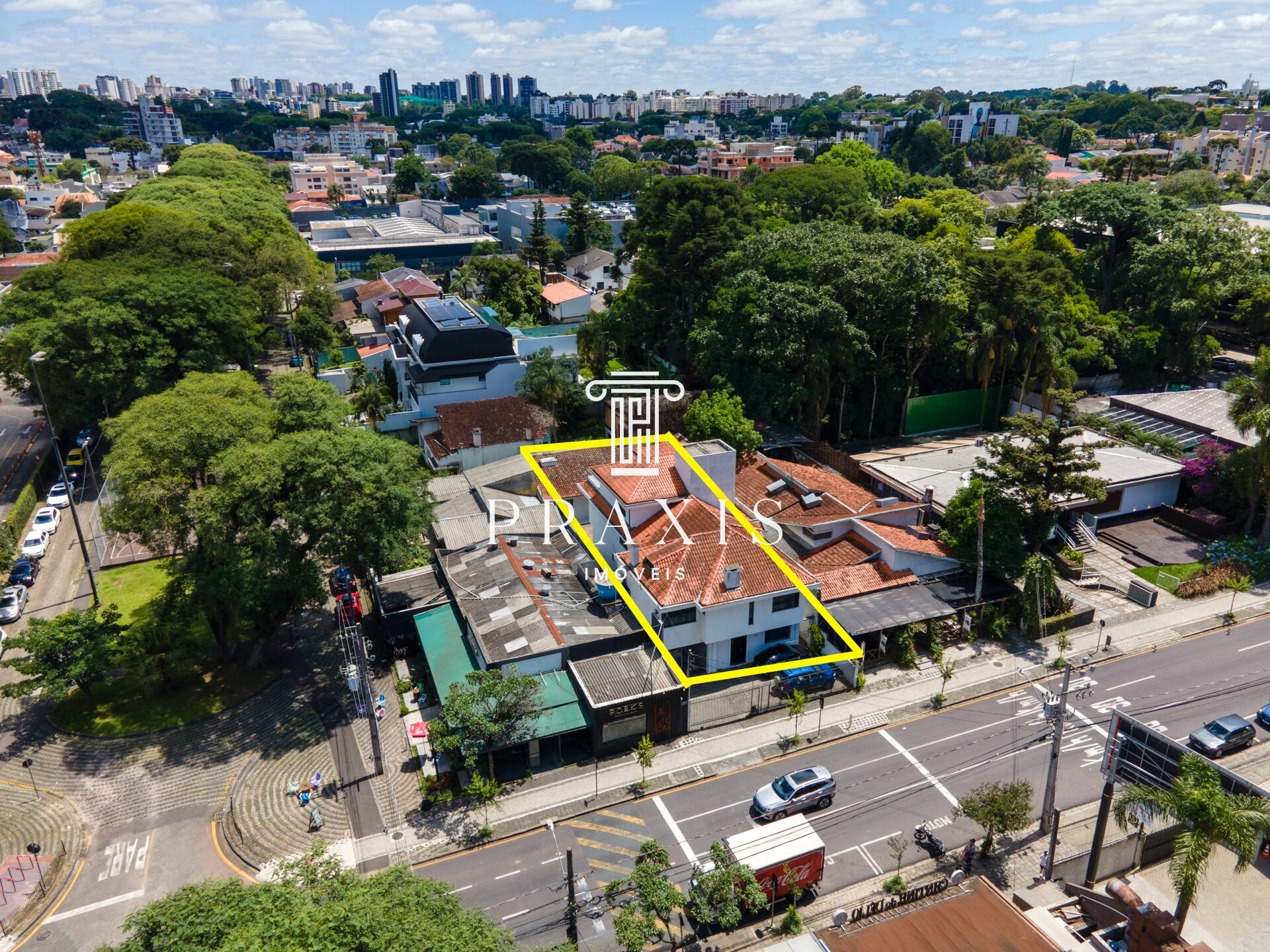 Localização ímpar, em frente ao Restaurante Cantina do Délio e ao lado da Forneria Copacabana, duas referências gastronômicas de Curitiba.