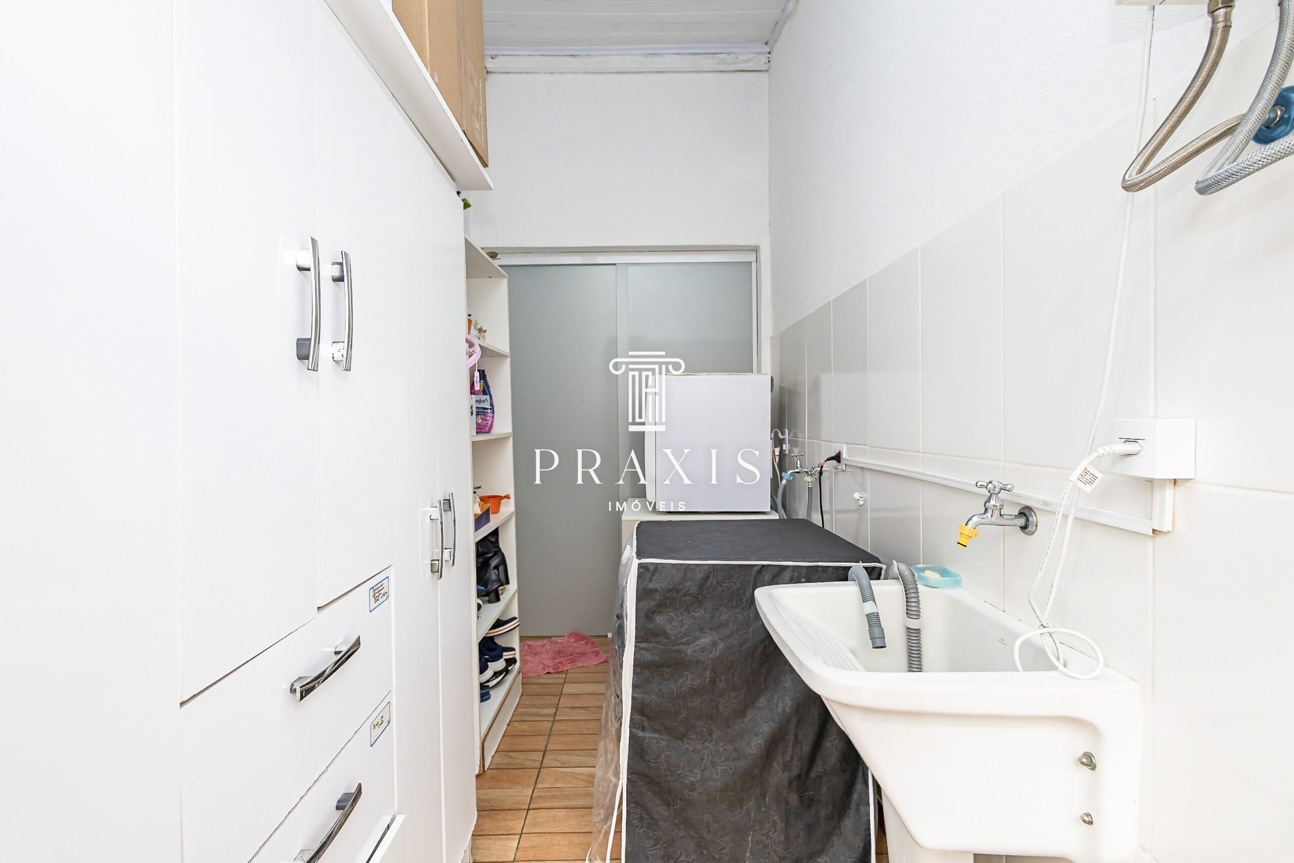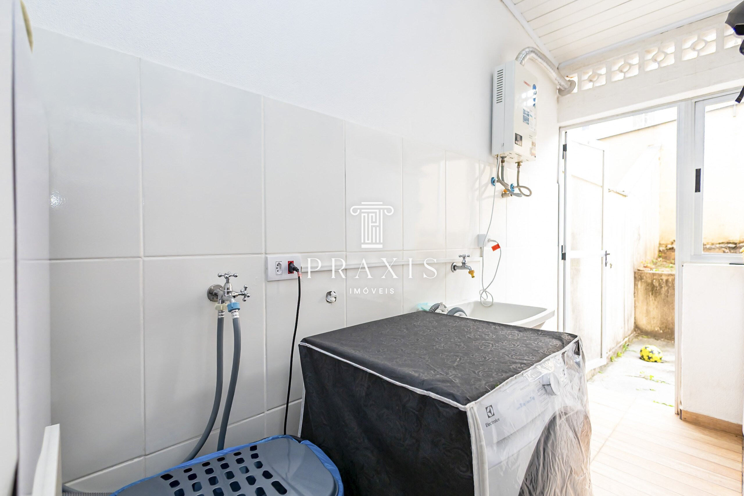 Lavanderia com infraestrutura para máquina de lavar e secar, tanque de apoio.